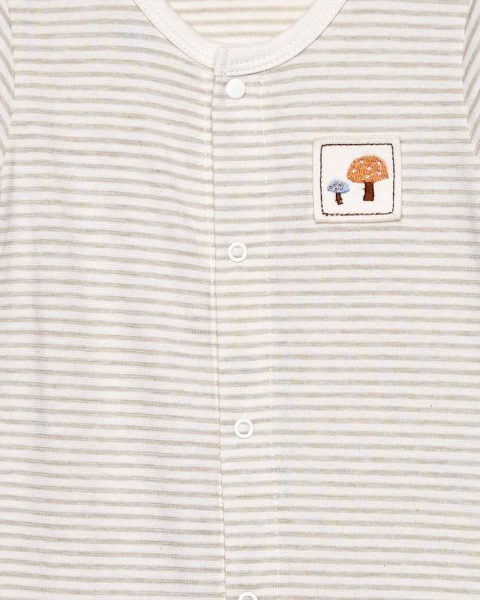 - Hoạ tiết kẻ sọc dễ thương được tạo điểm nhấn bởi miếng thêu ngộ nghĩnh khiến bộ bodysuit đáng yêu một cách nhẹ nhàng, tinh tế.