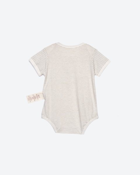 - Hoạ tiết kẻ sọc dễ thương được tạo điểm nhấn bởi miếng thêu ngộ nghĩnh khiến bộ bodysuit đáng yêu một cách nhẹ nhàng, tinh tế.