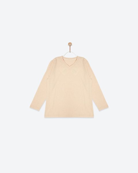 NatureColored 100% Organically Grown Naturally Colored Basic V-neck Top, Natural Brown